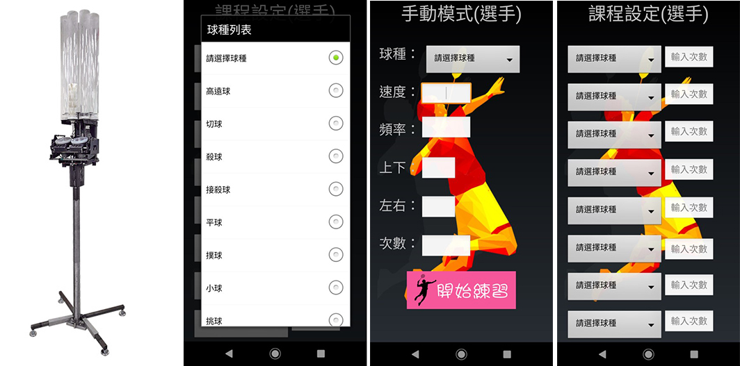 ● 可發出高遠球、平球、殺球、挑球..等多種球路,並可自動左、中、右轉向發球。 ● 發球頻率可達2球/秒,速度可達150km/h以上。 ● 具無線遙控功能,可接電池或市電,方便使用。