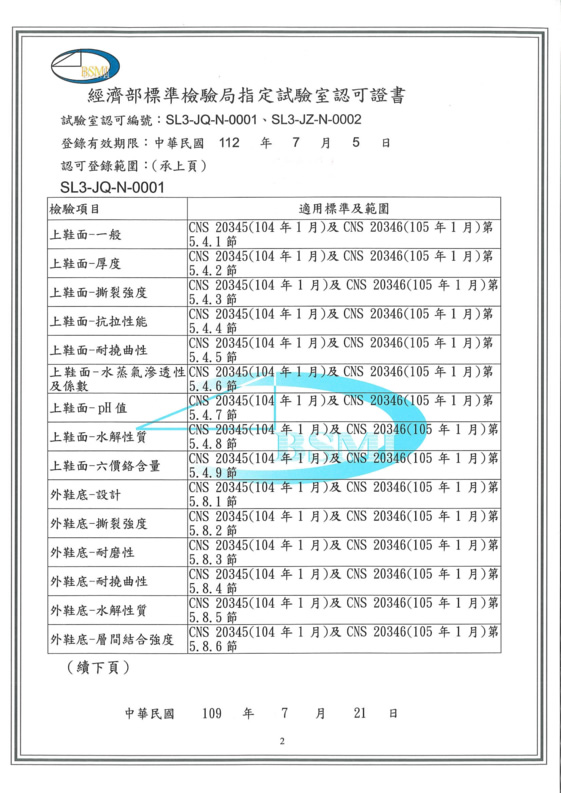 經濟部標準檢驗局指定試驗室編號SL3-JQ-N-0001 ● 原始登錄日期:中華民國105年12月13日 ● 認可登錄範圍:SL3-JQ-N-0001 ● 試驗項目:[試驗檔案下載] ※送測樣品:至少須7雙成品鞋